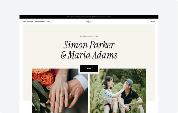 Share your love story, wedding details, and registry with a beautiful, personalized website that keeps your guests informed and excited